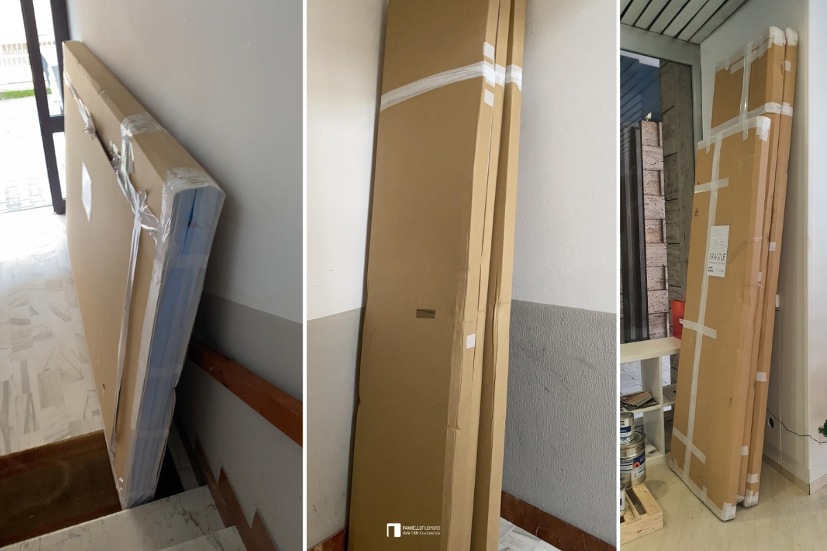 - Each item is carefully wrapped in protective polyethylene, with anti-impact corner reinforcements and dedicated protection for accessories. The product is then placed in a heavy-duty cardboard box, designed to absorb stresses during transit.