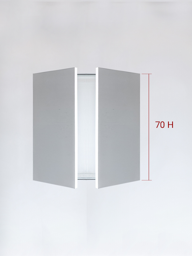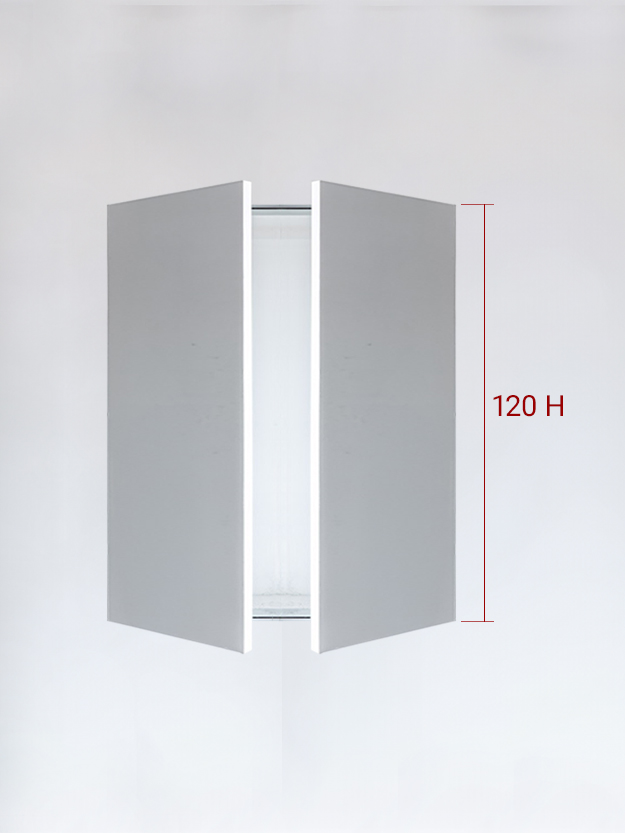 Different types of invisible panels: Invisible single panel cm 20×180 left hand facing door with push-pull (no handle) locking system; Invisible single panel upward cm 120×50 with push-pull (no handle) locking system; Invisible double panels cm 90×150 with push-pull (no handle) locking system; Invisible panel with folding doors with push-pull (no handle) locking system.