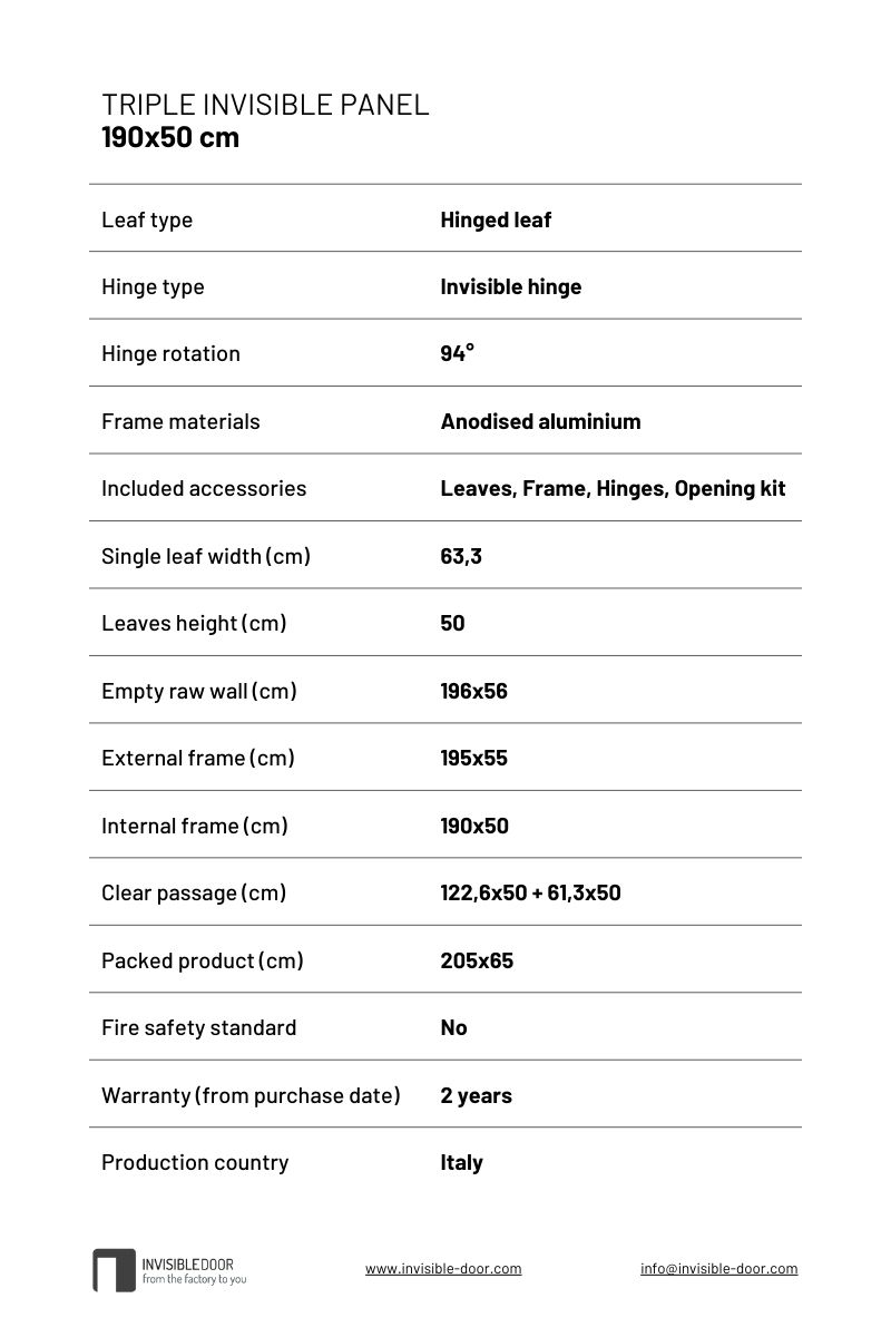 Invisible triple panels cm 190×50