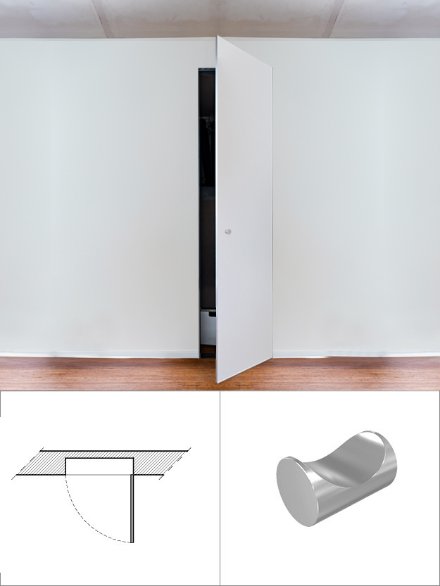 🔒 Push-pull closing system or minimalist, fixed, ergonomic knob. A recessed pull-out knob is available as an option.