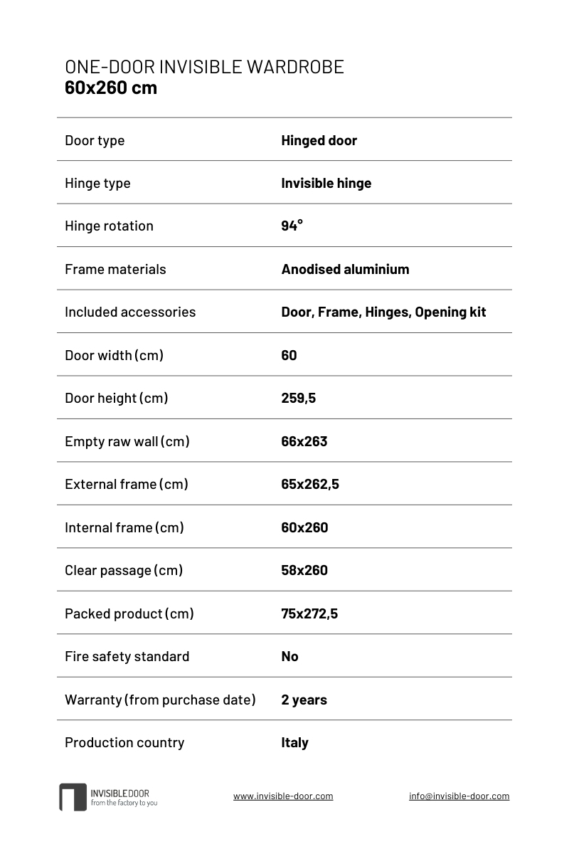 📏Door height: the composition and thickness of the wardrobe door allow us to produce doors up to 3 meters high, while the panel door can reach a maximum height of 180 cm.