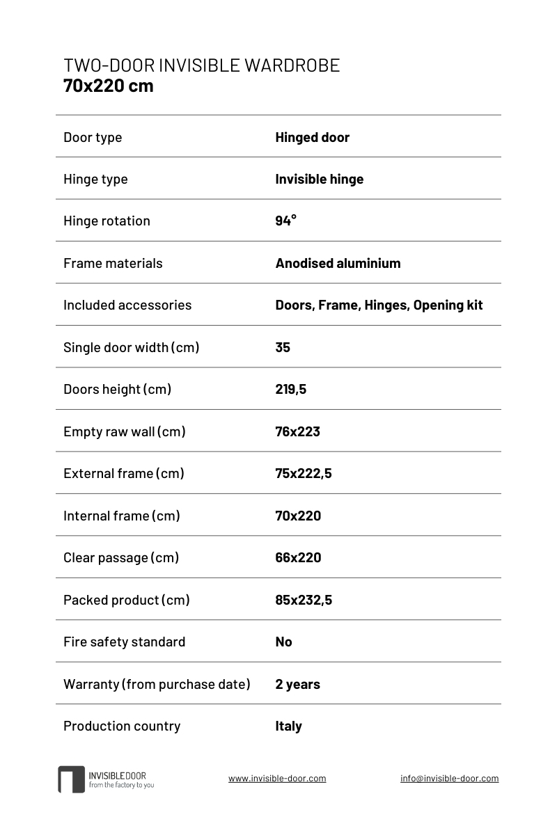 📏Door height: the composition and thickness of the wardrobe door allow us to produce doors up to 3 meters high, while the panel door can reach a maximum height of 180 cm.